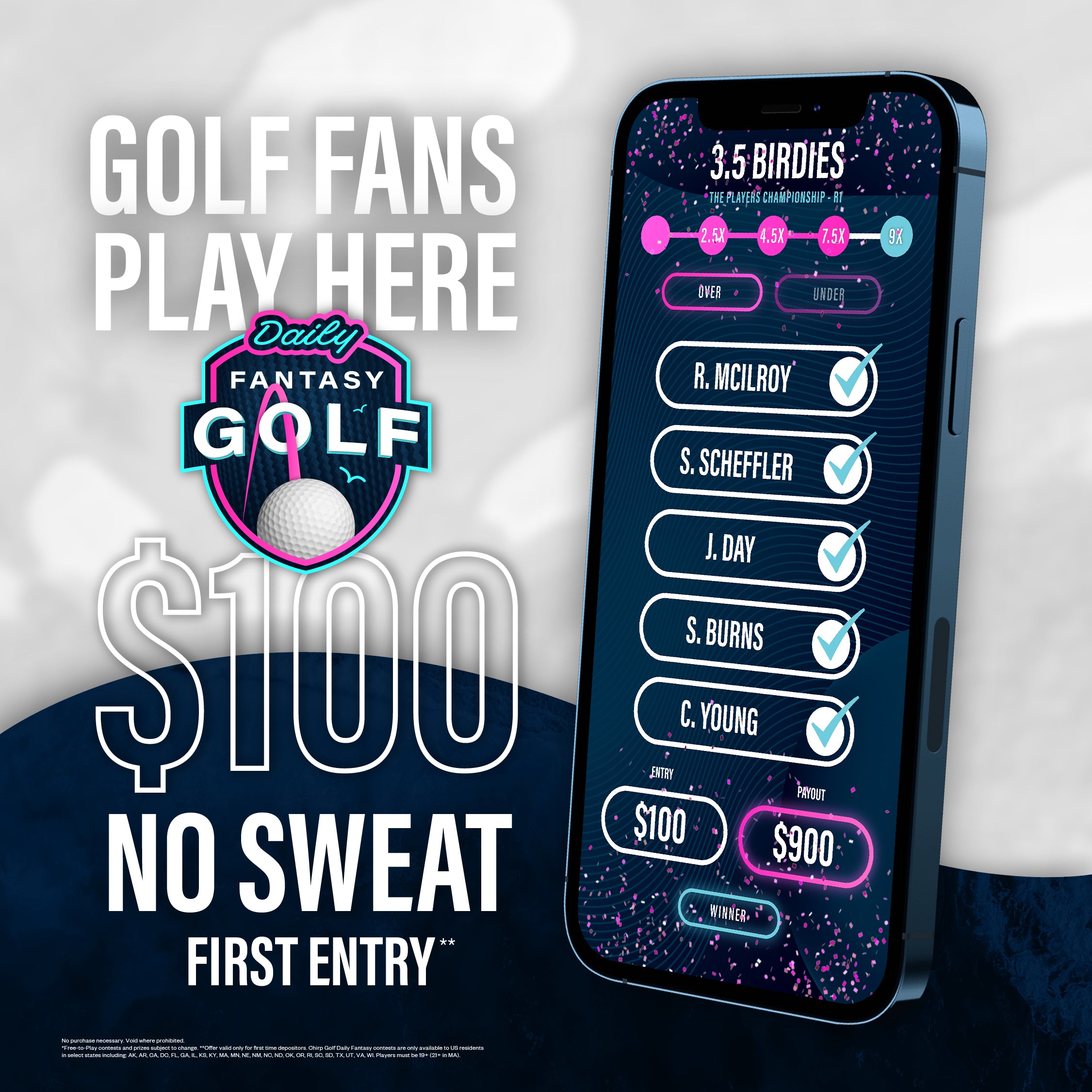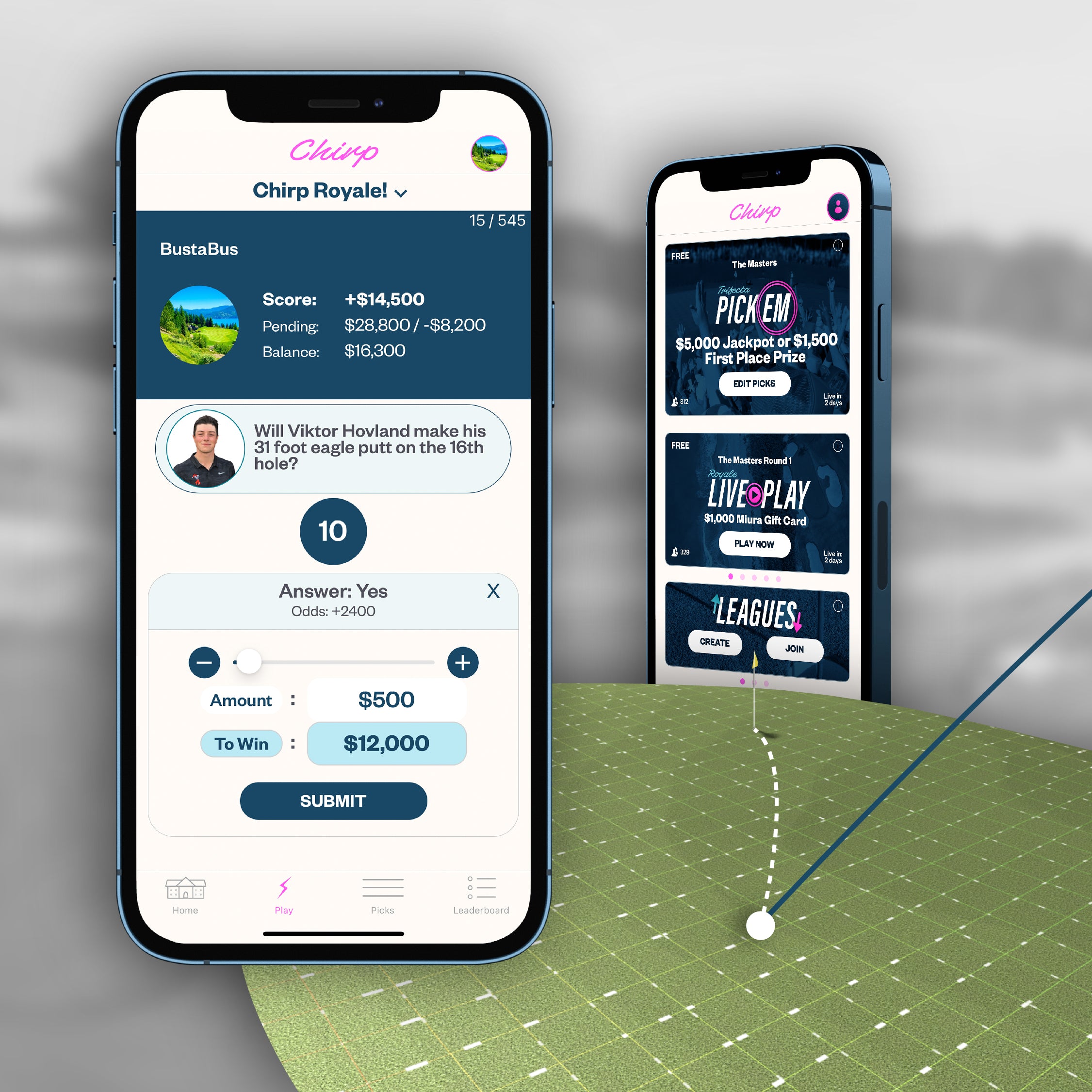 Chirp Golf fuels a new golf audience with games, competition, and community that make watching golf more fun and rewarding. Offering both free-to-play and real-money daily fantasy contests, Chirp Golf has something for everyone.